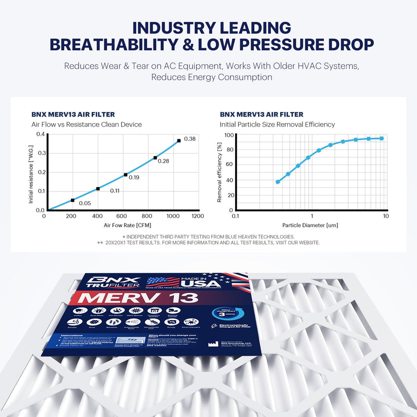 The MERV standard, which stands for Minimum Efficiency Reporting value evaluates the efficiency of air filtering. The BNX TruFilter has a MERV 13 rating, which means that it can capture up to 98 percent of airborne particles such as pollen, dust, mold spores, bacteria, and even some viruses. This high level of filtration is crucial for maintaining an environment that is healthy particularly for people suffering from asthma, allergies or any other respiratory issues.